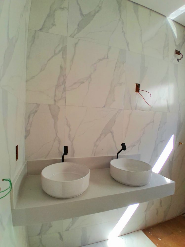 2 banheiros, sendo um master com chuveiro duplo e pias duplas